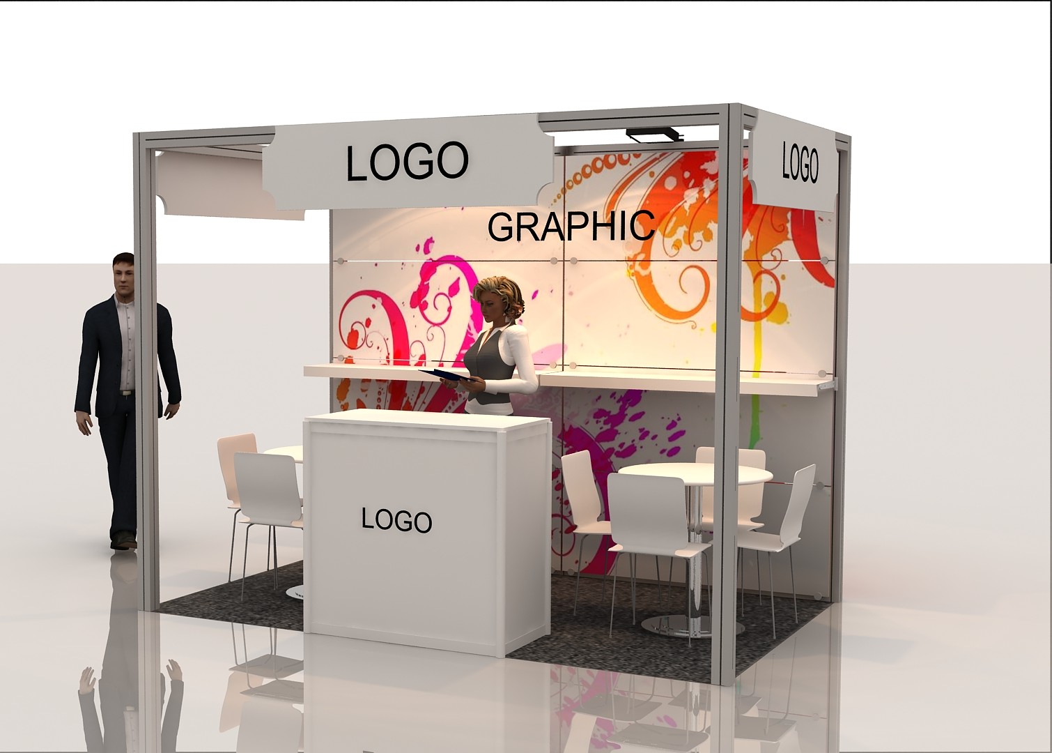 - 1 Backdrop branded with Exhibitor's own design (2 m * 2 m)